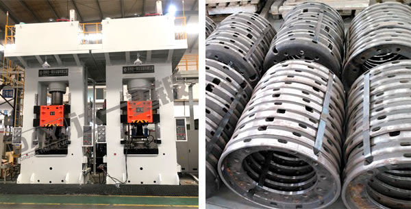 汽車輪輻成形液壓機是針對汽車輪輻拉伸、沖孔、精整工藝開發的專用液壓機,用于汽車輪輻的生產,具有設備精度高、生產效率高等特點。